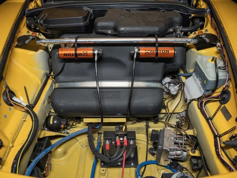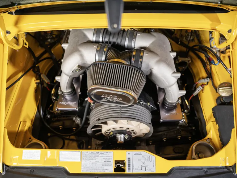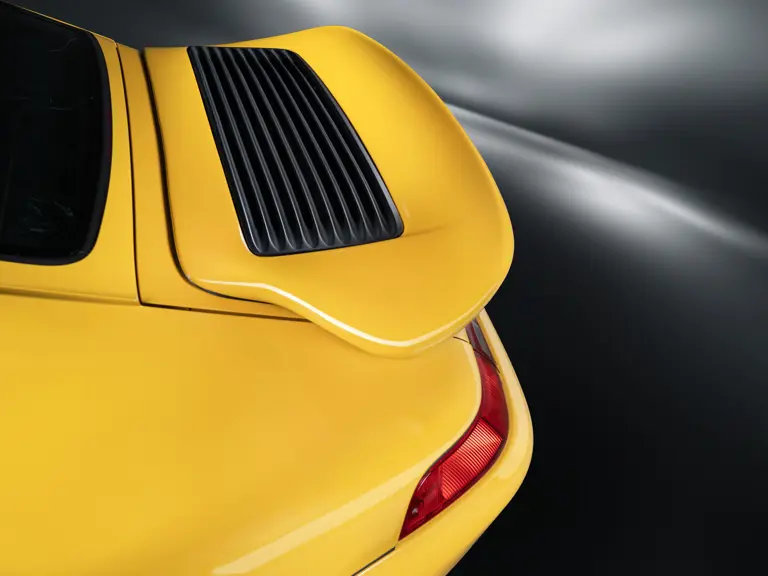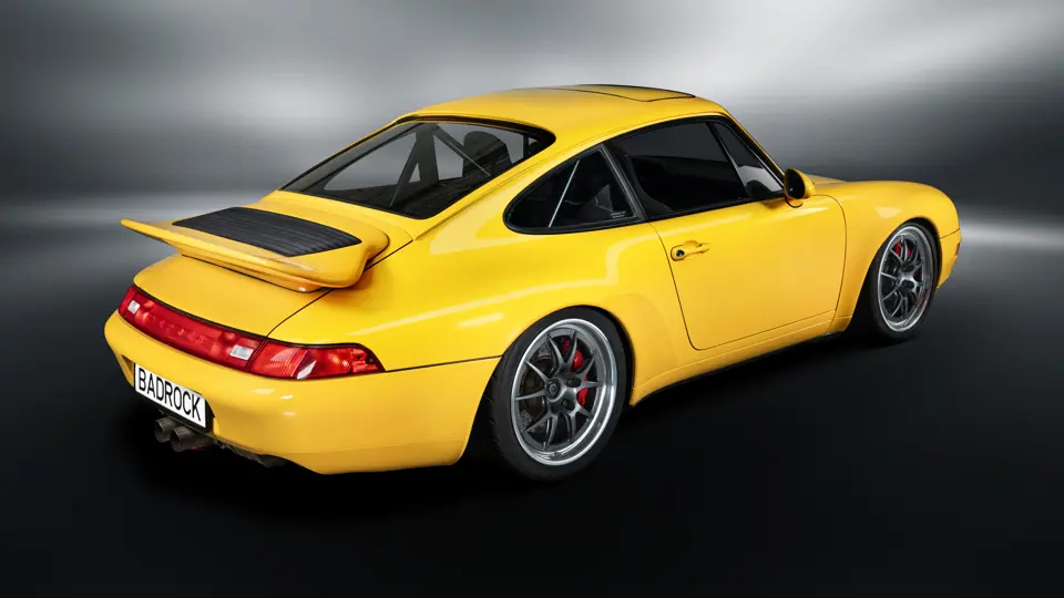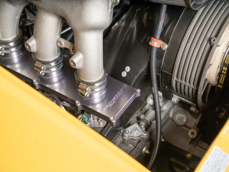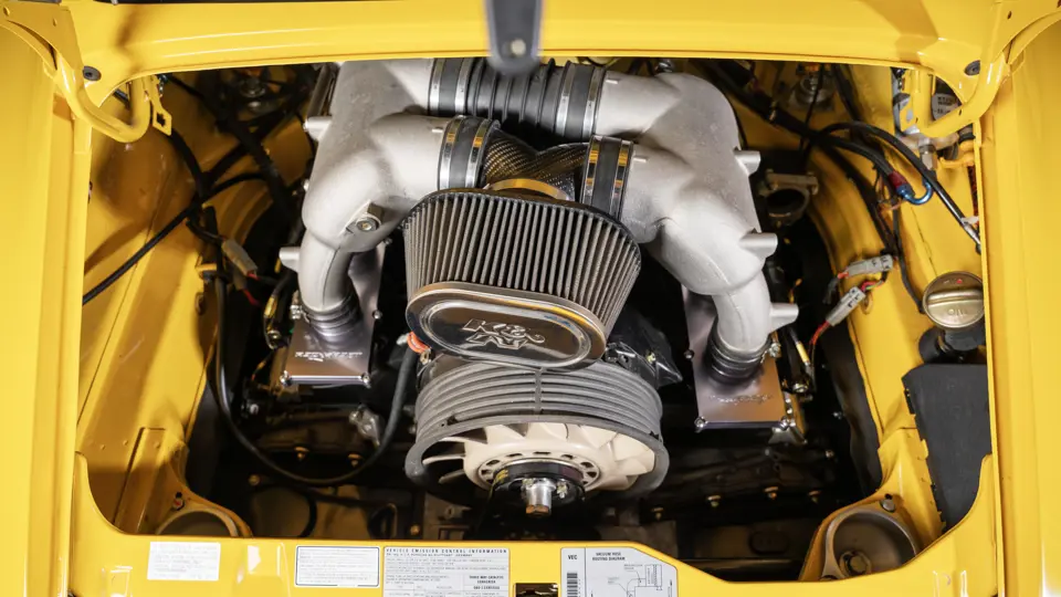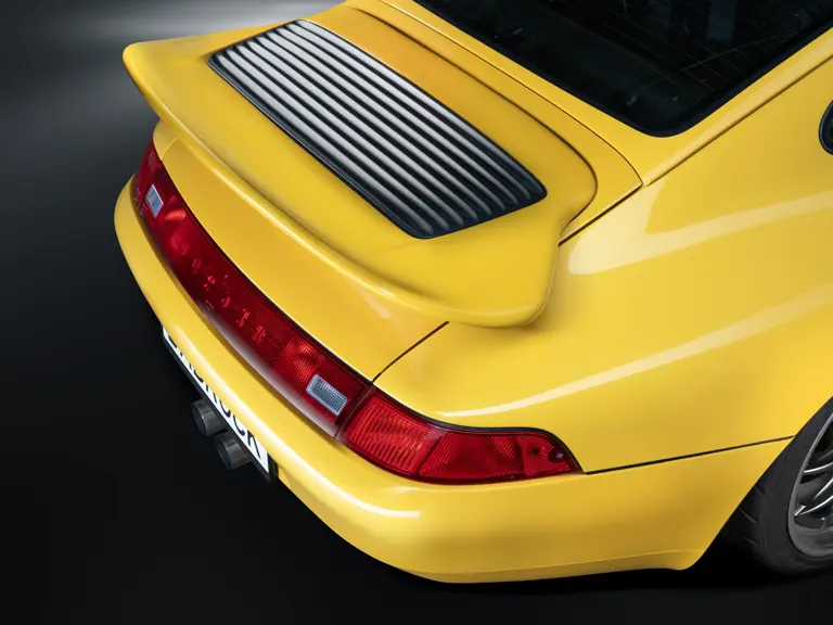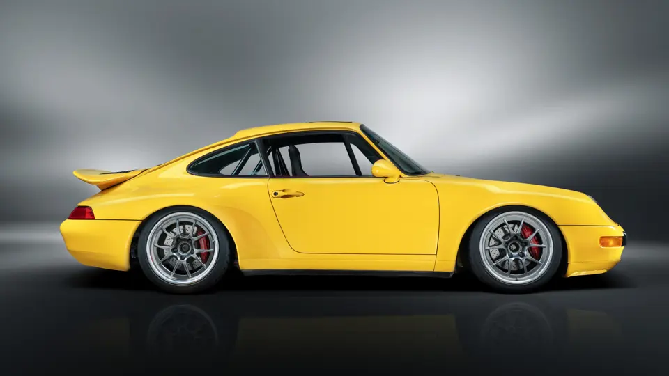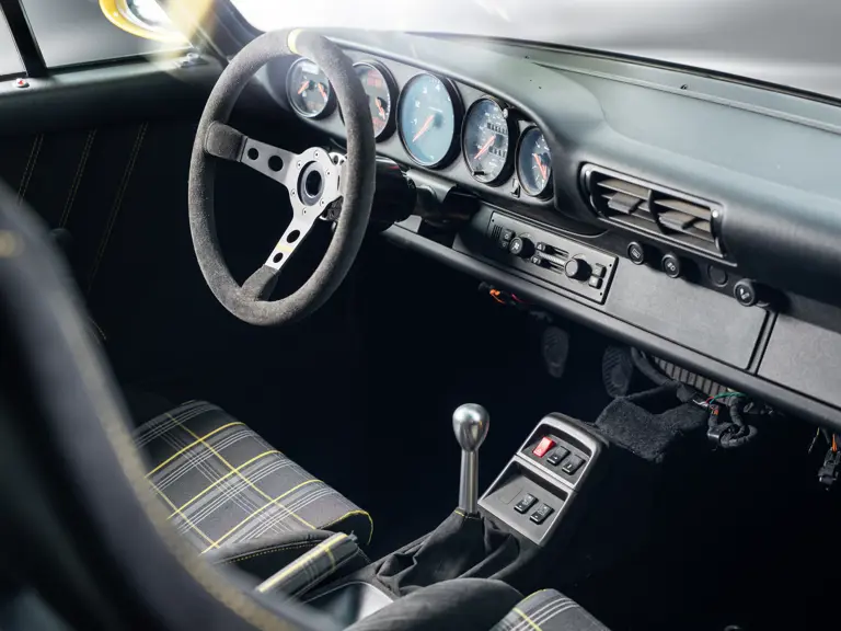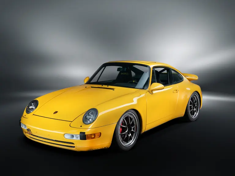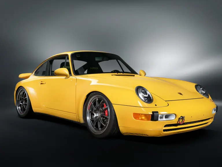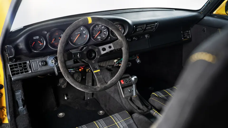 The starting point for this special 993 build is a US-market 911 Carrera 4 Coupe, completed in February 1995 and factory-finished in Speed Yellow over a Black interior. At its heart sits a Rothsport-built 3.9-liter race engine. Founded by Jeff Gamroth in 1988, Oregon-based Rothsport Racing is renowned for its air-cooled engines—the company supplies its highly refined powerplants to some of today’s best-known Porsche restorers and upfitters—and its expertise extends to production of specialty components, racecar preparation, and more.