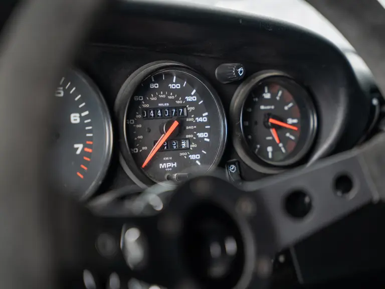 Completed in 2012 at a cost of over $68,000, this Rothsport engine incorporates a 964-type crankshaft, Omega pistons, and Pauter con rods. Rothsport custom headers and a GT3 muffler have been fitted, as well as a Rothsport billet slide throttle set with a GT3 resonant plenum. Dyno sheets on file show a peak output of over 412 horsepower and 317 pounds-feet of torque, all controlled via a six-speed manual gearbox. Rennsport Systems of Portland, Oregon, supplied an upgraded braking system, which uses 993-generation 911 Turbo front and rear rotors, Turbo front calipers, and RS rear calipers. A roll cage, as well as a Moton Suspension adjustable damper system, hint at the 911’s track day intent.