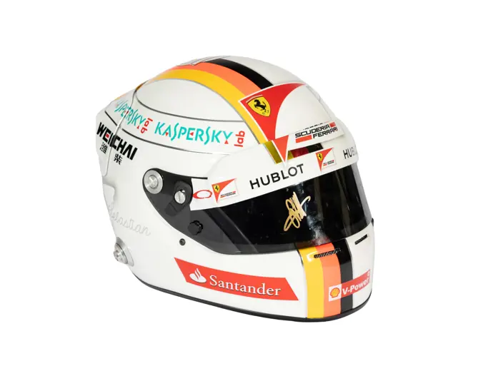 - Bell HP77 carbon fiber race helmet worn by Ferrari Formula 1 driver Charles Leclerc in the 2019 Japanese Grand Prix
