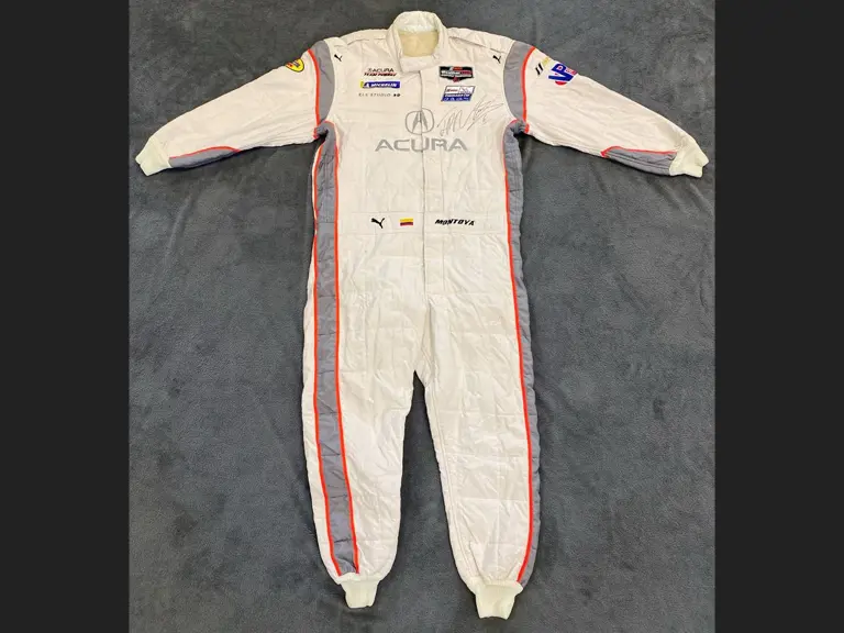 Donated by Juan Pablo Montoya, this signed racing suit was worn by him during while he was driving for Acura Team Penske during the 2019 WeatherTech Sports Car Championship, where he finished first in the driver’s championship with co-driver Dane Cameron.