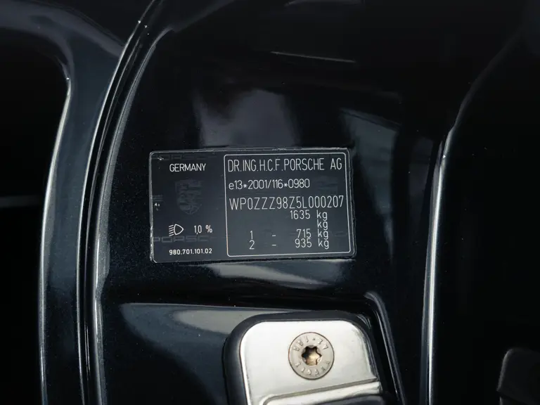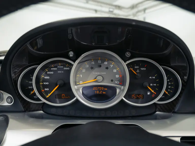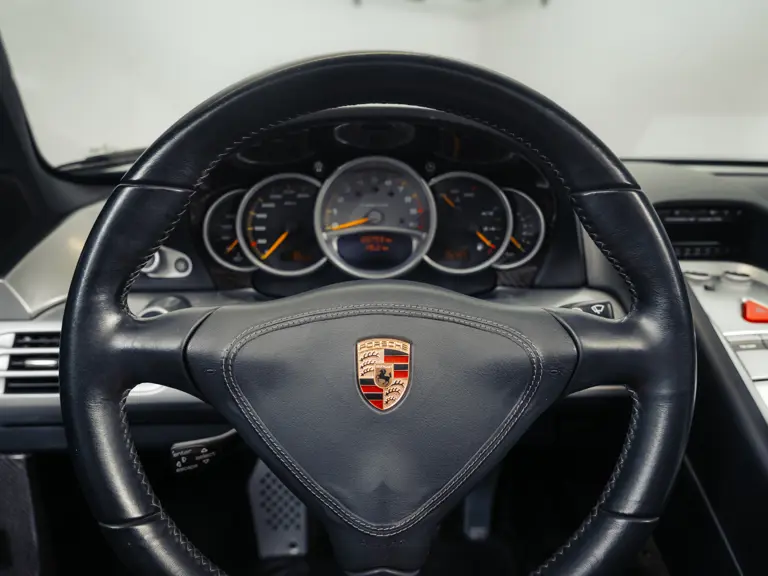 In May 2025, the Carrera GT was presented to Porsche Center Copenhagen for its most recent servicing work, at which point the odometer read 20,470 kilometres. The car has been retained in storage since, with just 18 kilometres driven since. During this workshop visit, the workshop performed a major service, changed all brake pads, renewed the brake fluid, fitted four new Michelin Cup tyres, and addressed outstanding factory recall safety notices. The Porsche workshop notably resolved the APA3 recall campaign, which began early in 2023 as a “Stop Use” warning that affected many of the Carrera GT’s 1,270-strong build run. The critical safety issue for potential corrosion to suspension wishbone components was dispelled. While with the main dealer, the car’s clutch measurement was noted at 28.3 millimetres. The cost for this work totalled some 133,596 Danish kroner (approx. €17,880). The car’s odometer reads 20,758 kilometres at the time of cataloguing.
