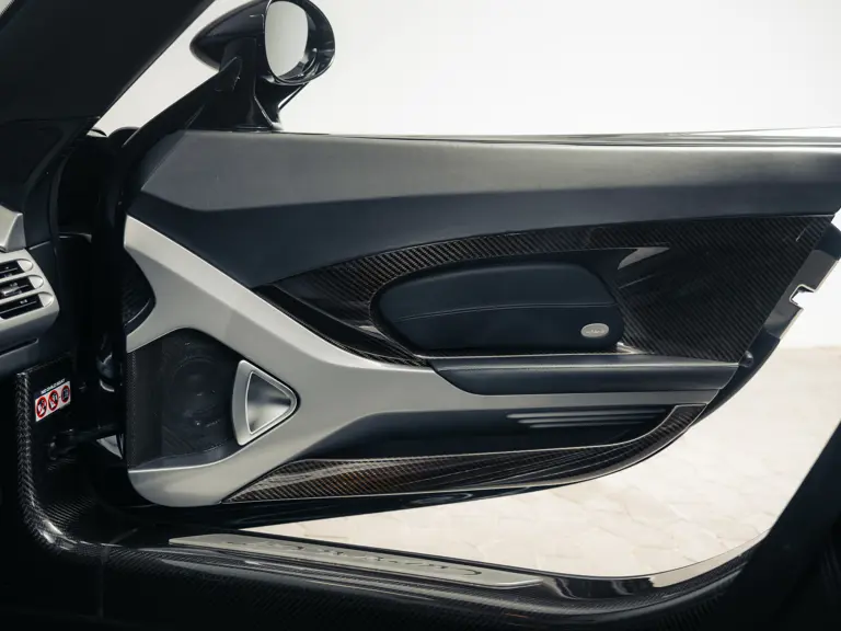 The example offered here, recognised as serial number 0761, was built to European specification by Porsche’s Leipzig factory. The Carrera GT was marked as complete on 22 April 2005 and recorded for delivery to Denmark. The Porsche was finished by the factory with a Basalt Black Metallic exterior complemented by a Dark Grey leather interior and was further enhanced with optional extras including the Porsche Pro CD Radio, air conditioning, and the fitment of 19-inch, five-spoke alloy wheels with motorsport-derived centre-lock hubs. As per the accompanying Porsche owner’s manual, the Carrera GT was noted to have been delivered to its first owner on 7 May 2005, with the order fulfilled by main dealer SMC-Biler Odense A/S. It was later registered for the road in Denmark for the first time on 13 May 2005. The accompanying service book shows that the car’s recorded service history has been fulfilled exclusively by authorised Porsche dealers. It is understood that the Carrera GT was acquired by its most recent owner in 2012, at which point the car had only covered just under 8,000 kilometres. In their ownership, the Carrera GT has accrued just over 12,000 kilometres in 14 years of driving, representing less than 1,000 kilometres a year.