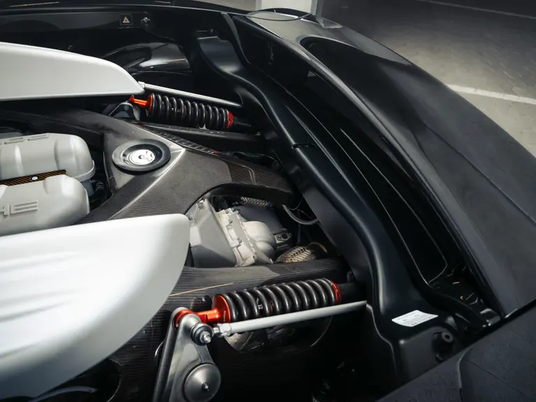 The materials that went into the construction of the Carrera GT were a cut above expectations. By utilising a carbon-fibre monocoque and sub-frame, as well as carbon-ceramic brakes, Porsche’s engineers pushed the envelope of what was mechanically possible to offer a car that was as light as it was strong. Porsche also designed a three-disc carbon-fibre racing clutch for the car, which measured around 20 centimetres in diameter and was about one-third the size of a normal clutch. Similar attention to detail was applied to nearly every facet of the car. The ultra-lightweight forged magnesium wheels had centre-locking bolts that were colour-coded for each side of the car, ensuring that wrong bolts were never replaced on the incorrect side of the car.
