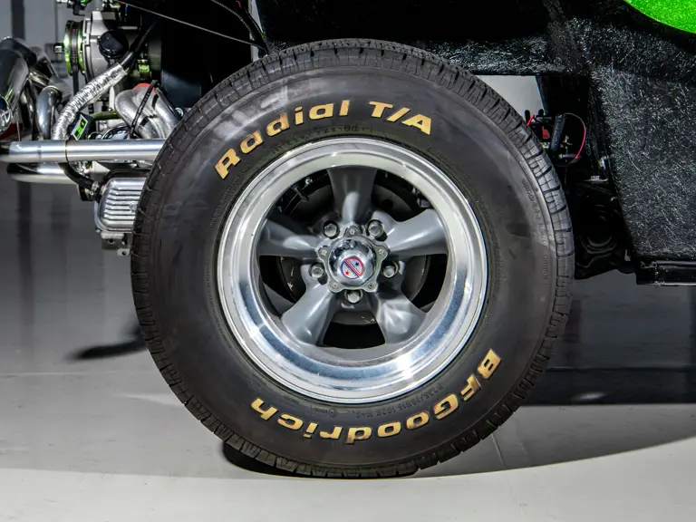 - Period touches include EMPI trigger shifter, bucket seats, and American Racing Torq-Thrust wheels wrapped in BF Goodrich radial tires