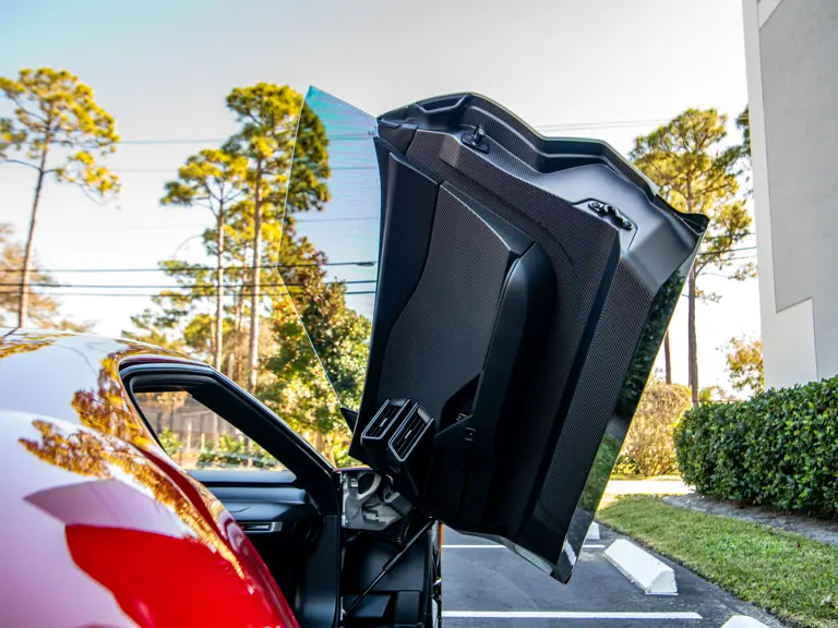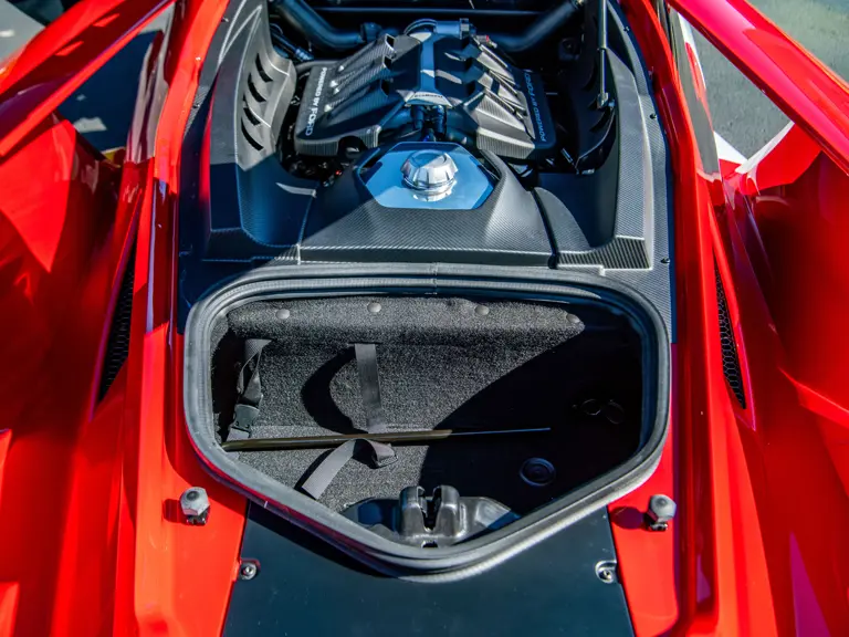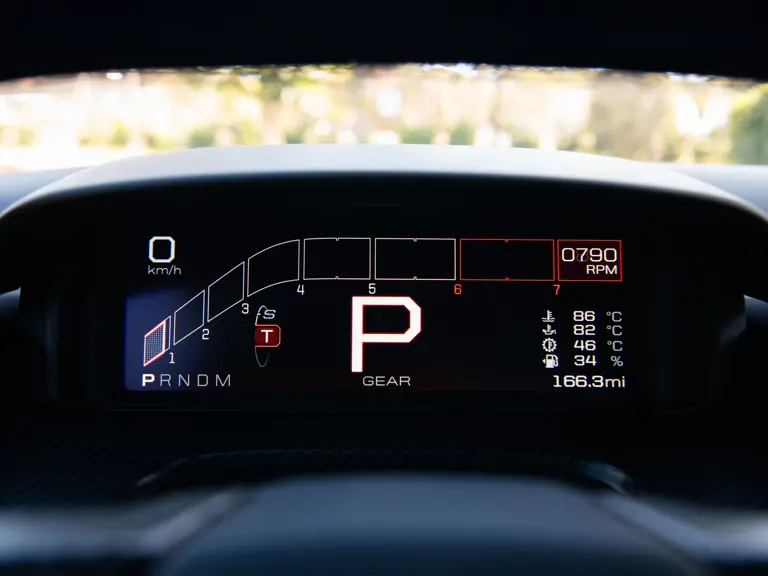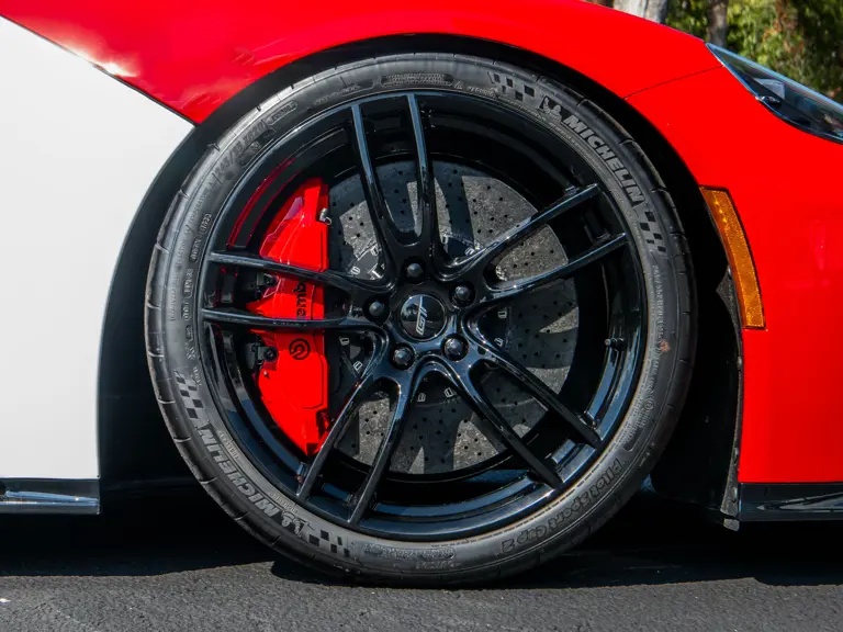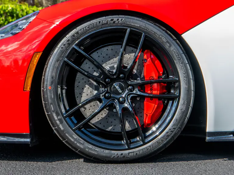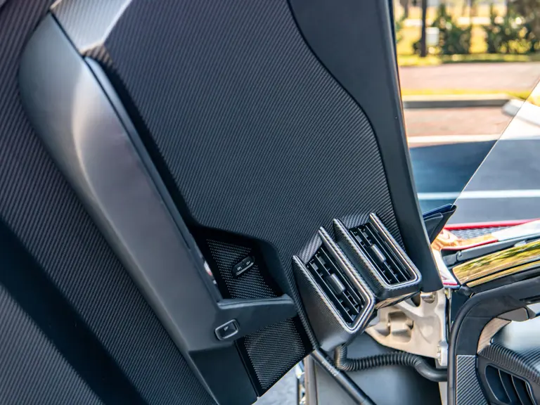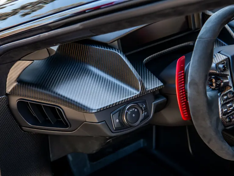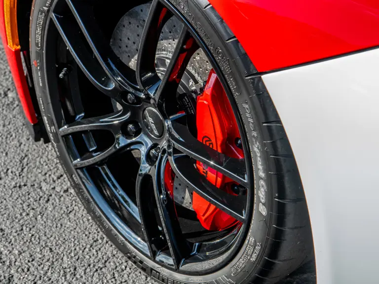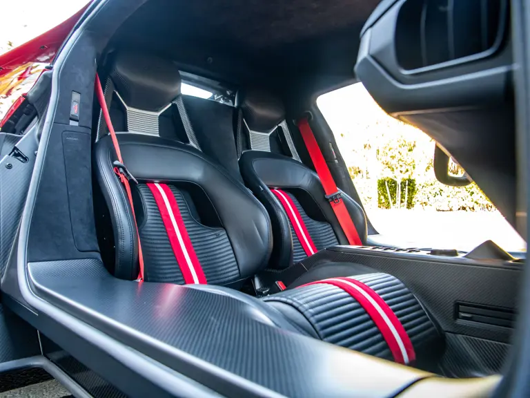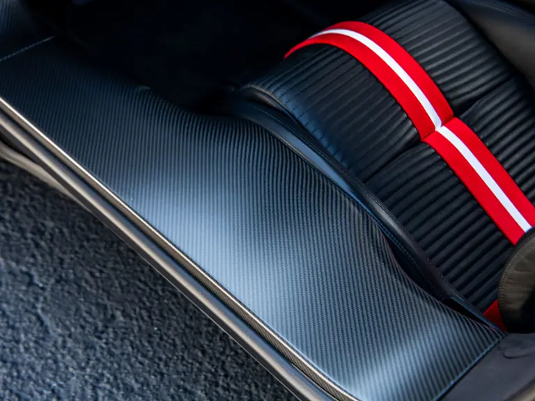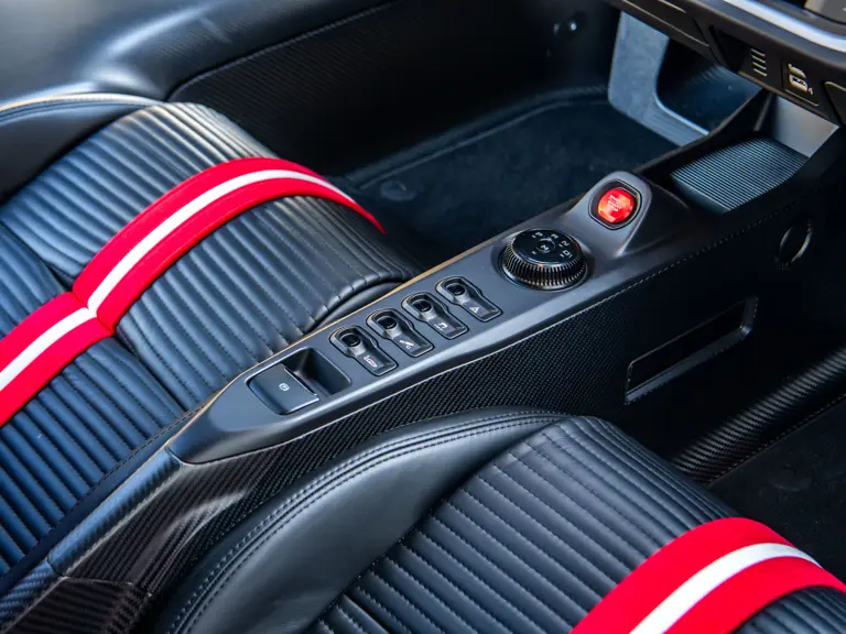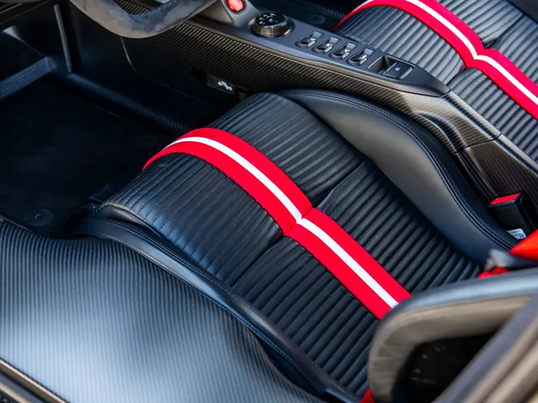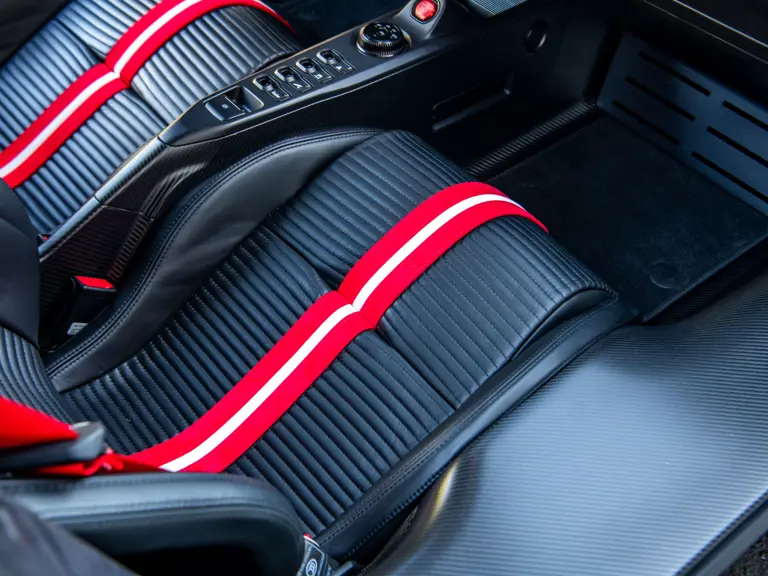 The color scheme continues inside with red-and-white-striped seats, red seat belts, and red paddle shifters. Altogether, the various elements combine to create a striking, singular specification for the Le Mans-winning supercar.