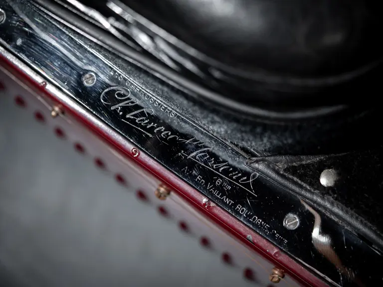 He would soon put this chassis, then wearing temporary torpedo bodywork, to work; he achieved overall victory at the 1928 Rallye de Pau while entered in the lower 2-to-3-liter category, followed by a class win a few days later at the nearby Morlaas hillclimb. Soon after, respected Parisian coachbuilders Lavocat et Marsaud completed a two-seat roadster-style body for the chassis. Photographs on file display this design in its original form with the front wings flowing into the running boards, a folding windscreen, and a rumble seat in the rear.