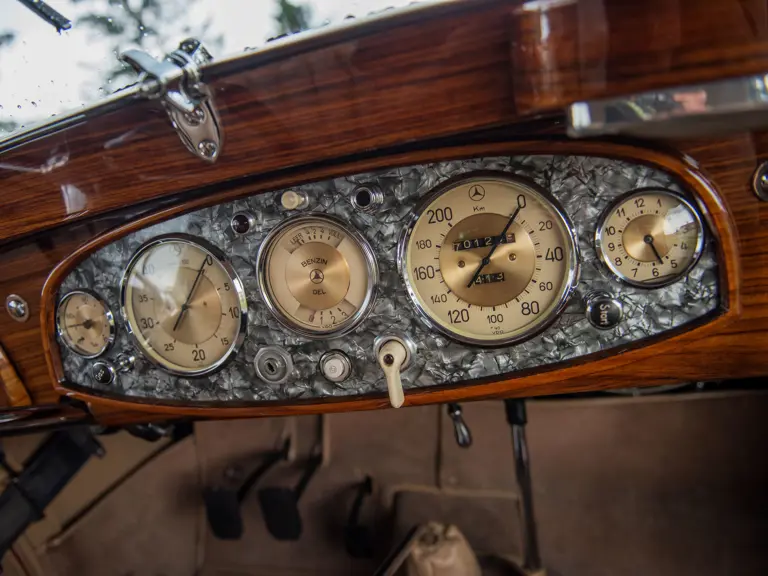 The example offered here is one of those surviving Cabriolet Cs. Recorded by Mercedes-Benz under Kommission number 209800, the factory archive indicates it was delivered on 12 October 1935 to a customer in Hamburg. Around 1980 it was discovered in the ownership of the late collector Izzy Dupont of Columbus, Ohio. A photo on file from that time depicts it still in apparently very good condition, and in that condition it was acquired from Mr. Dupont’s estate by collector Richard Wesselink of Thousand Oaks, California. In recent correspondence, Mr. Wesselink recalled purchasing the car and commissioned its restoration by the renowned Hill & Vaughn between 1984 and 1985; he noted that at this time, partner Phil Hill was still actively involved and personally participated in the completion of the work.
