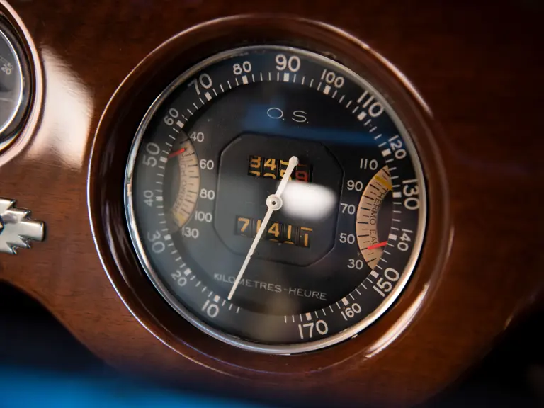 Since restoration, the car’s presentation has mellowed significantly, with minor areas of lifting and checking visible throughout the paintwork, and some age and discoloration to the cream leather interior. It boasts many desirable touches, however, such as the rear-mounted spare and a crank-operated sliding sunroof, and its styling and triple carburetors are sure to win it new fans in the years to come.