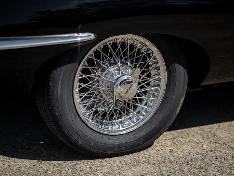 Chassis sequencing for the Series 1 3.8-liter roadsters production indicates that this handsome 1962 example is among the last of the 1,932 “flat floor” cars, and indeed it features the mid-series inside bonnet latches and latter pressed louvers. Thankfully, the older restoration which this E-Type wears today was executed to a high degree of accuracy as each of these distinctive factory features have been retained. Additional factory-correct features specific to these Series 1, US-market roadsters are found throughout the car’s exceptionally well-prepared cabin, engine bay, and exterior. Importantly, it is powered by its numbers-matching inline six-cylinder engine and cylinder head, here mated to a correct-type Moss non-synchromesh four-speed gearbox—yet another of those accurately presented mechanical features particular to these early E-Types. In preparation for sale, the consignor has recently fitted a completely new set of all-season tires to the proper chrome wire wheels with twin “dog ear” knockoff hubs.