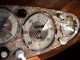Finished in a rich deep maroon and black with maroon leather interior in the late 1980s or early 1990s, the car’s restoration has aged somewhat but its paint and interior are still solid and charming in appearance. Significantly, it retains not only its factory engine, but the original firewall Typenschild and order number plate, bearing Kommission number 269503, as well as the original polished wood trim, which still has Possehl’s green paint on the undersides of the door cappings—indicating that much of the restoration, of what had been a very original car, was largely cosmetic.