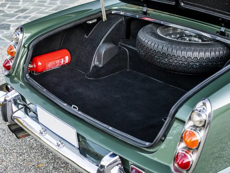 Chassis number 1945 SA was constructed in mid-1960 as the third of those seven short-wheelbase cabriolets, and it was built to left-hand-drive configuration with open headlamps. It was finished in a beautiful, one-off color combination of Verde Bottiglia (MM 16364) over Rosso (VM 3171). It was fitted from new with a set of three Weber 46 DCF carburetors, like on a 250 SWB “SEFAC Hot Rod,” and a pair of Bosch ignition distributors. The coachwork was completed by Pinin Farina in July of 1960 and was sold new to Helmut Horton, a German entrepreneur based in Croglio, Switzerland. In January of the following year, the car was registered in Milan under Horten Italiana S.r.l, and it remained in Italy for the following three years under Horton’s ownership.