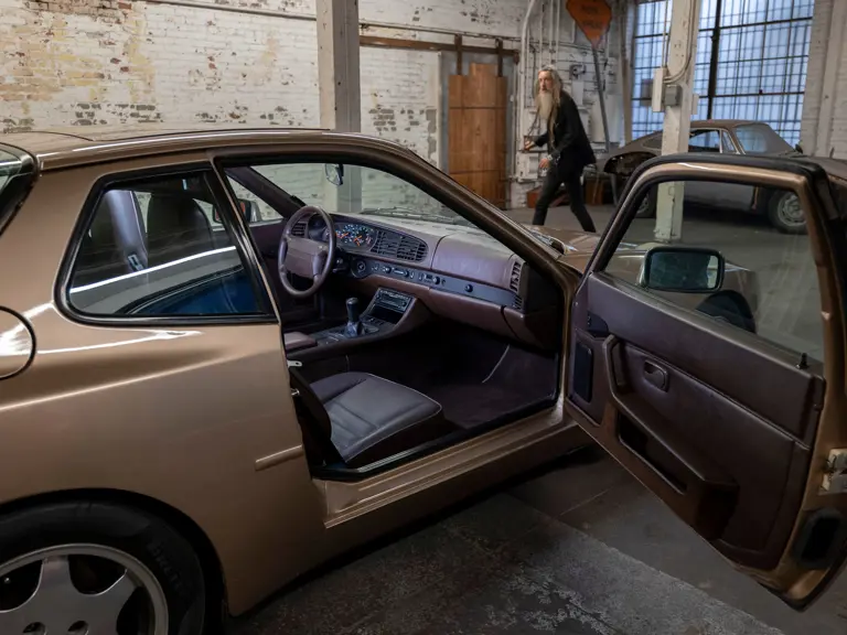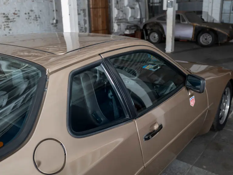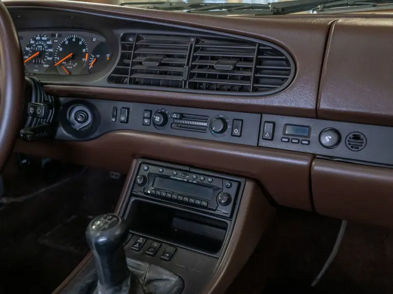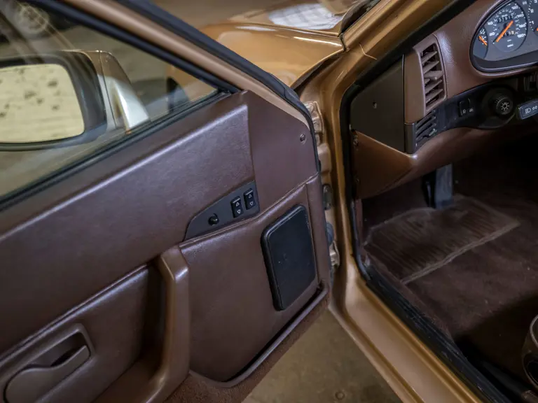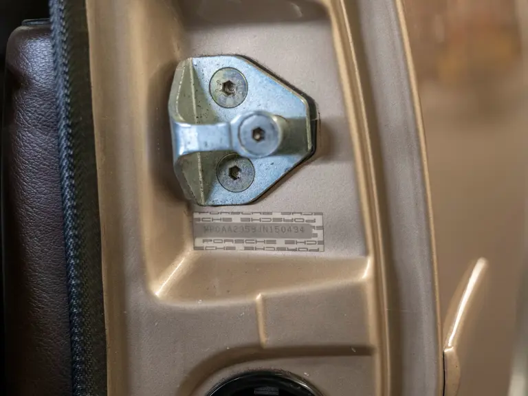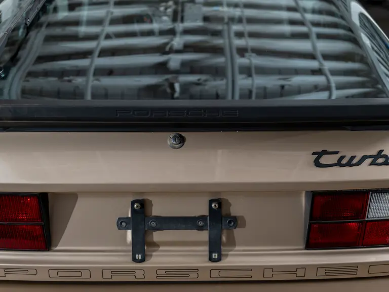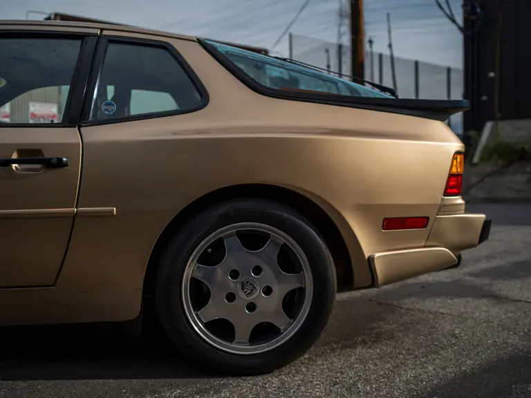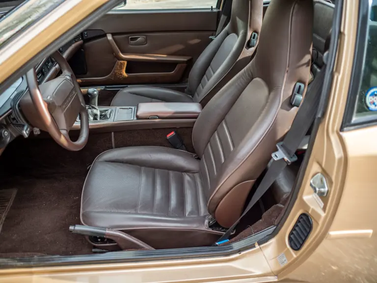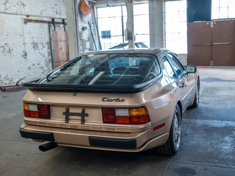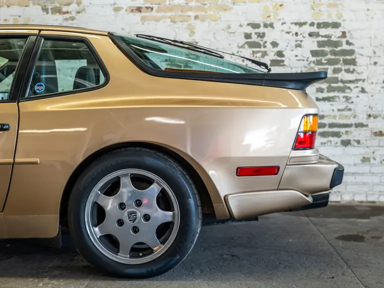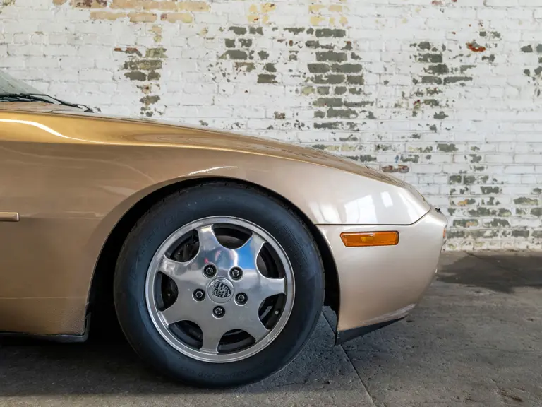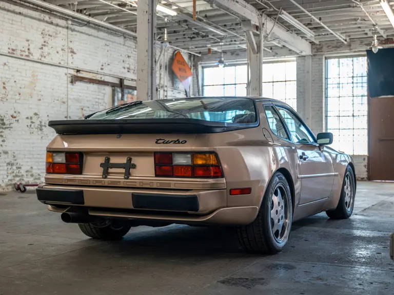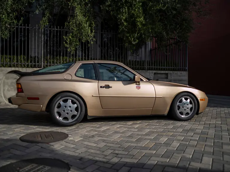 Reported by Magnus Walker to be a long-term California car, this 944 Turbo is finished in Almond Beige Metallic over brown partial leather trim. Equipped with a five-speed manual transaxle, sliding sunroof, and cruise control, its odometer read 131,913 miles at the time of cataloguing.