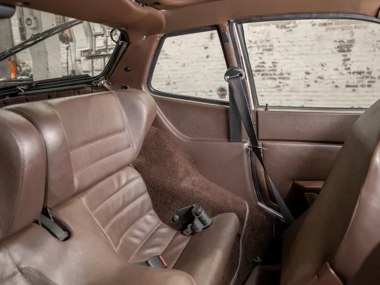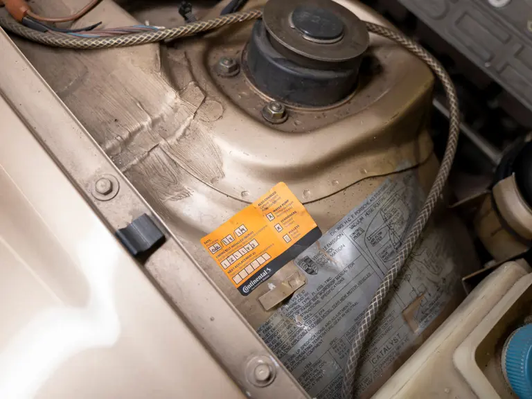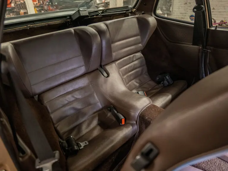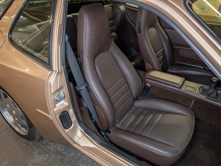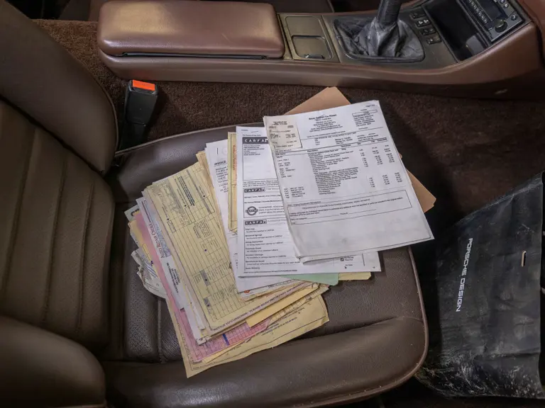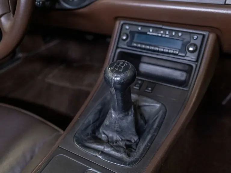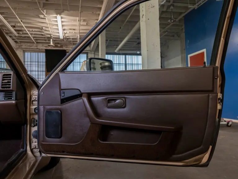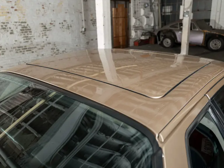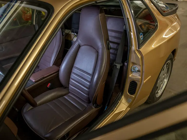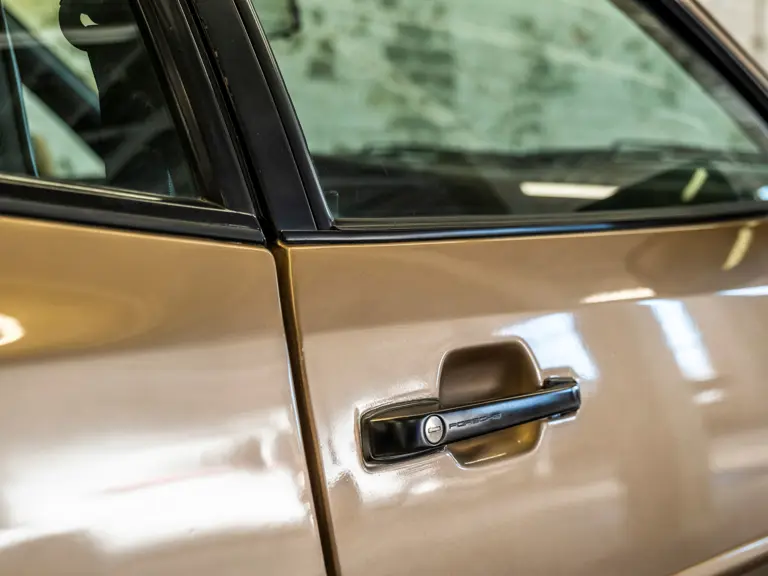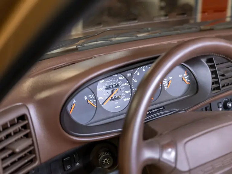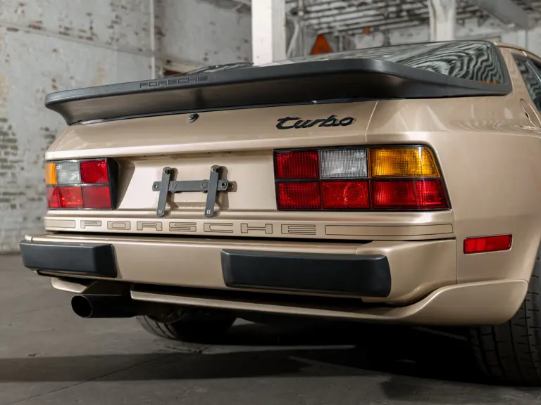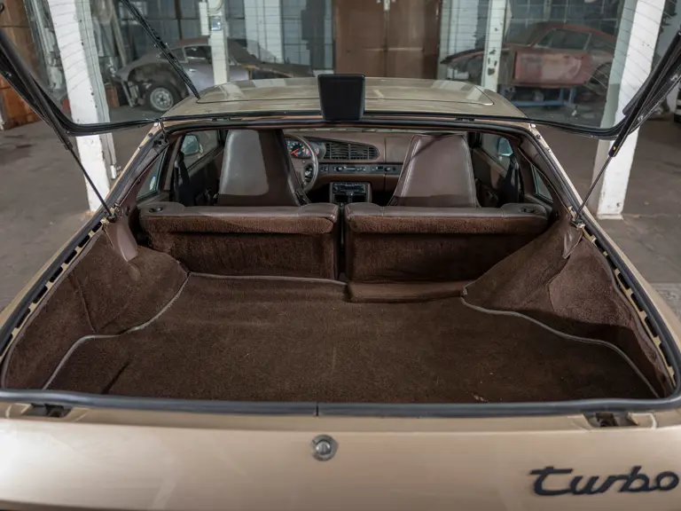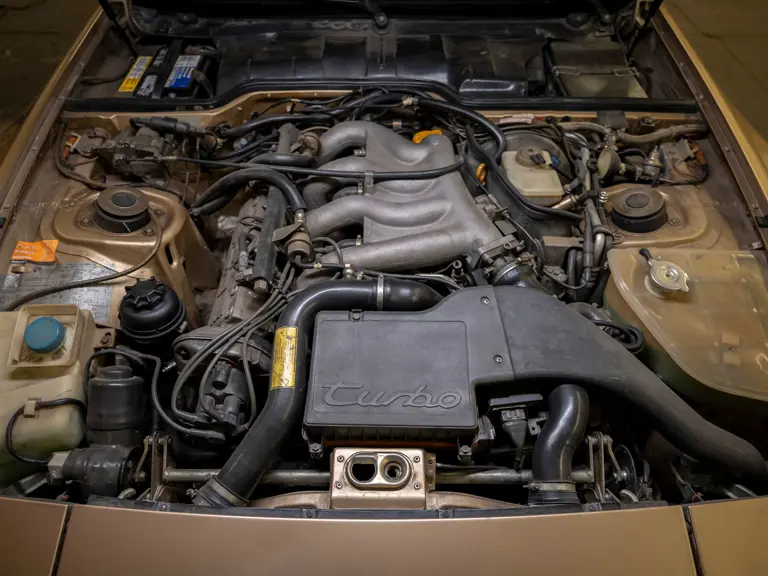 Reported by Magnus Walker to be a long-term California car, this 944 Turbo is finished in Almond Beige Metallic over brown partial leather trim. Equipped with a five-speed manual transaxle, sliding sunroof, and cruise control, its odometer read 131,913 miles at the time of cataloguing.