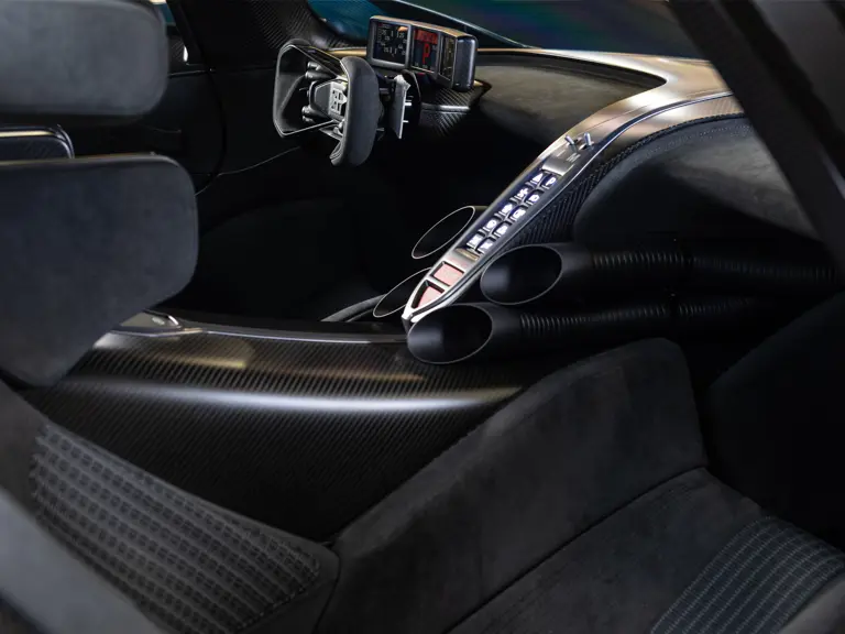 In its simplest terms, the Bolide is Bugatti’s mind-blowing celebration of its mammoth quad-turbocharged 8.0-litre W16 engine that debuted in the Veyron. In 2005 that now-legendary, top speed record-breaking road car stopped the press with its headline-generating output of nigh on 1,000 horsepower. Staggeringly, now, in this track-only hypercar, modifications to the turbos and lubrication system mean it is rated for a colossal 1,600 horsepower. With that might transmitted via a permanent four-wheel-drive system, the Bolide launches from 0 to 100 km/h in only 2.2 seconds and is rated for a top speed of 380 km/h. Holding a dry weight of 1,450 kilograms, the Bolide also boasts a weight-to-power ratio of 0.91 kg/hp.