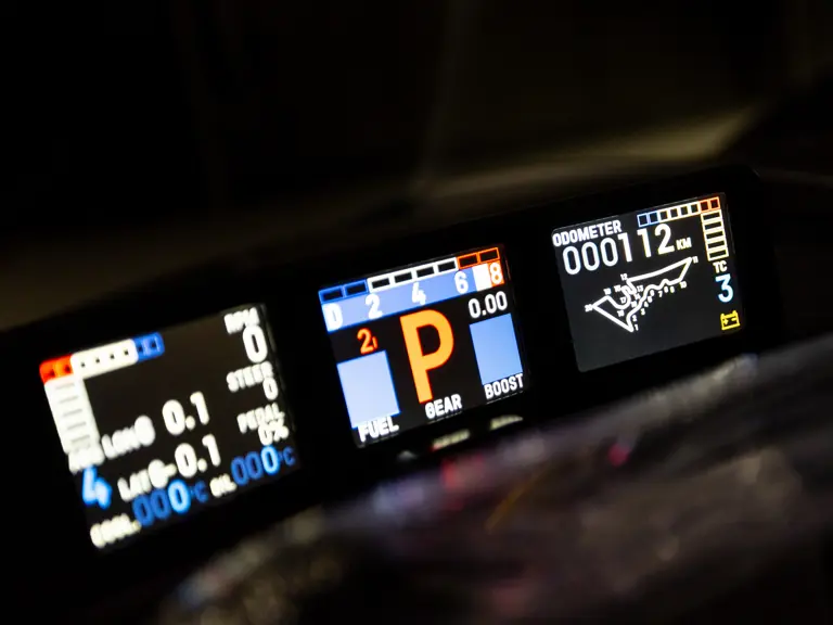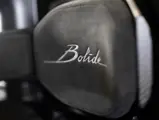 Parallèlement, l'intérieur de style prototype est habillé d'Alcantara Beluga Black avec surpiqûres assorties. Les appuie-têtes des sièges baquets sont brodés du logo Bolide en fil Gris Rafale. De plus, en clin d'œil aux 24 Heures du Mans, une plaque représentant le tracé du circuit de la Sarthe est fixée à l'avant du toit.
