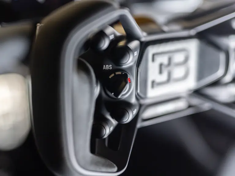 Proposée comme une exemplaire "comme neuf", cette Bugatti affichait au compteur le chiffre remarquable de 112 km au moment de préparer ce catalogue. Elle est vendue avec deux "flight case" Bugatti, un manuel technique, une housse de protection, une trousse à outils avec gants, un chargeur de batterie et un jeu de jantes de rechange.