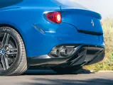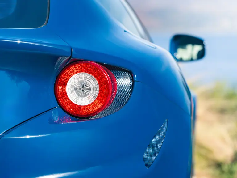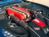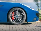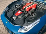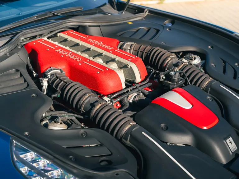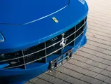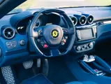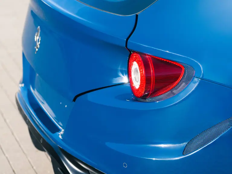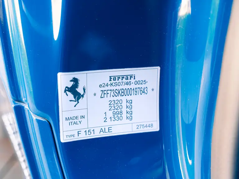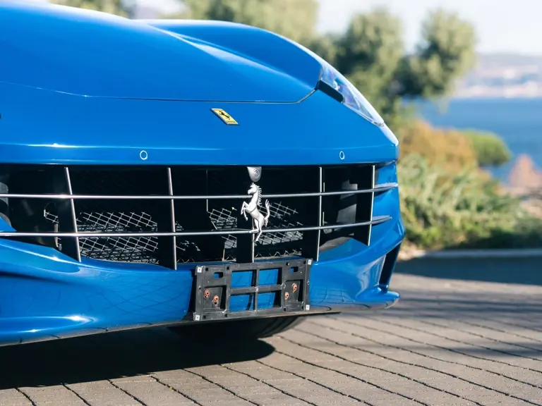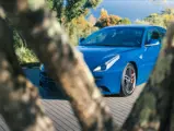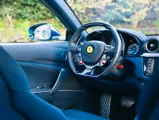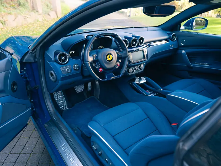 The attractive Ferrari is instantly recognisable in its distinctive configuration. Finished in special order Nuovo Blu, the Blu interior exhibits a feature seldom seen in any modern Prancing Horse: cloth seats. The fabric is also finished in Blu to complement the FF’s overall colour scheme, while Cavallino logos are stitched into the headrests, white contrast piping lines the upholstery, and Blu carbon fibre trim completes a sporty look. A full-length glass sunroof reinforces the FF’s standing as a luxurious and opulent grand tourer.