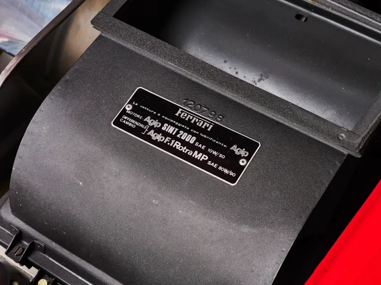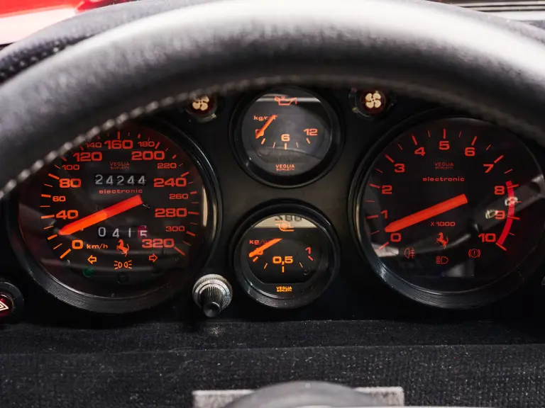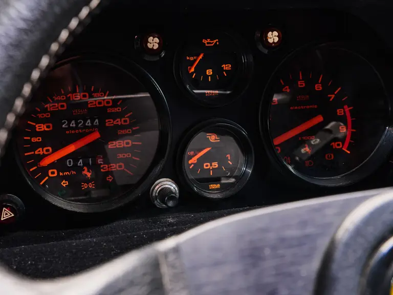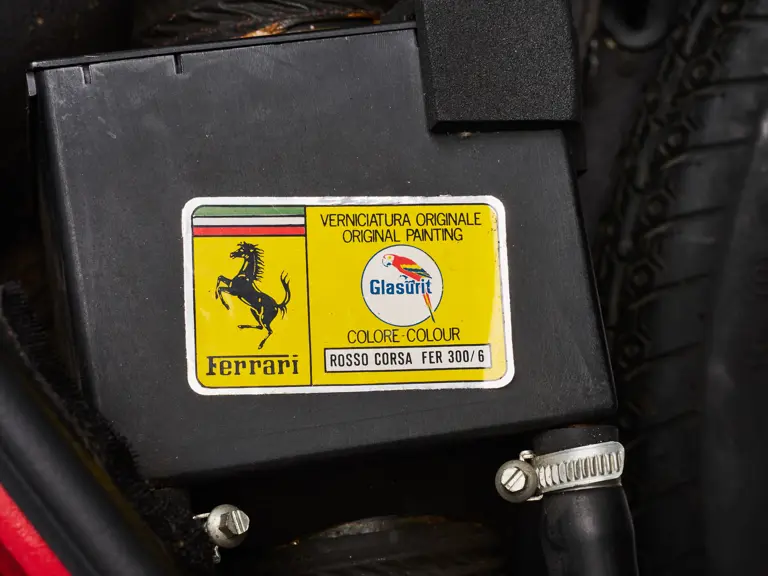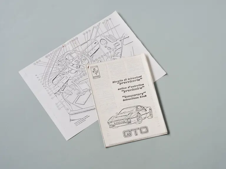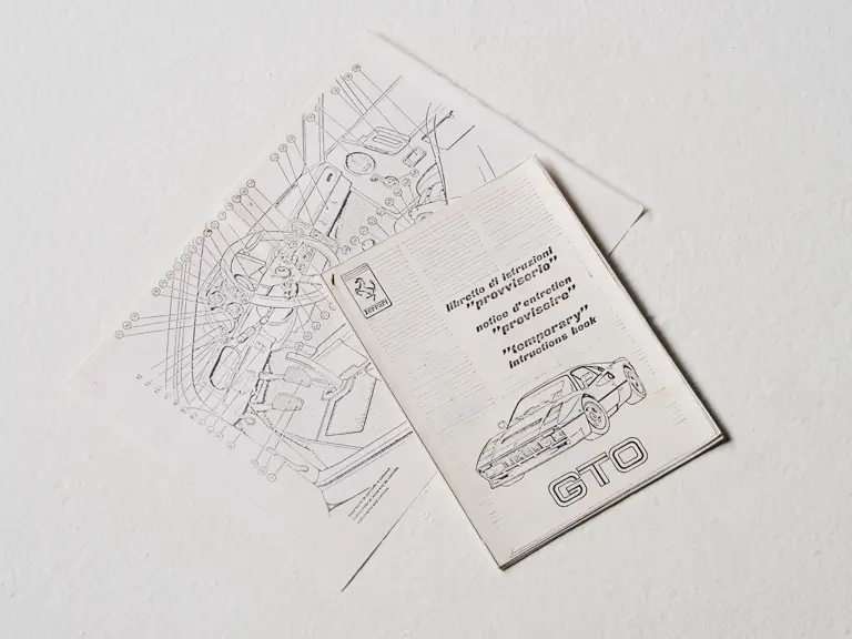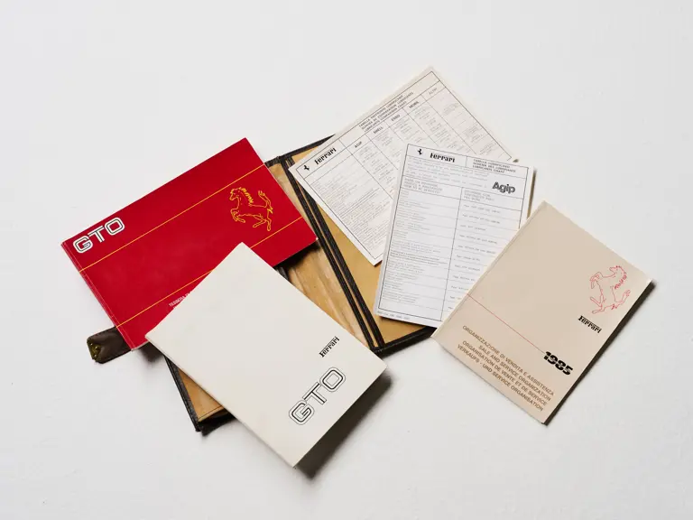 The owner enjoyed the Ferrari early in its life, although the car had only accrued 24,243 kilometres at the time of a November 2010 service at Autofficina Bonini Carlo. The 288 has experienced significantly less use since, with the odometer displaying 24,244 kilometres at the time of cataloguing, a gain of just one kilometre in 15 years. Most significantly, in December 2025 the GTO was factory certified with a Ferrari Classiche “Red Book” that stipulates the presence of the matching-numbers engine and gearbox/transaxle, the ultimate confirmation of authenticity.
