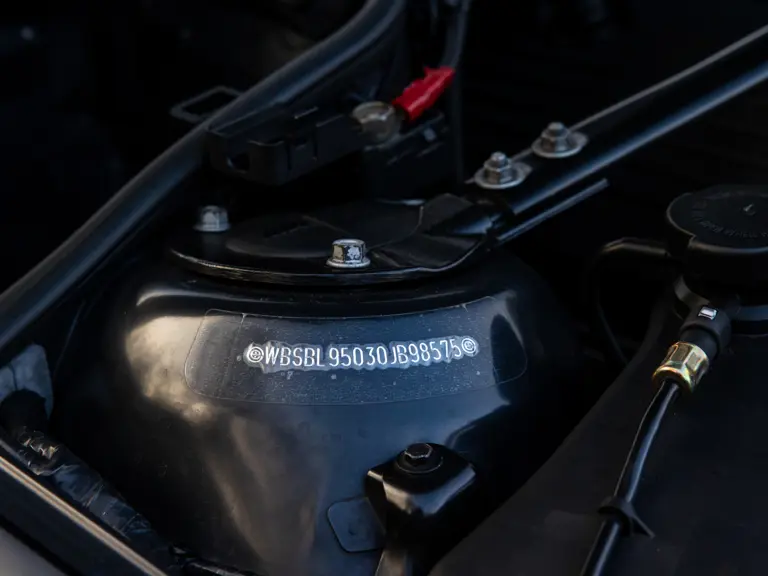 Produite le 27 septembre 2003, elle fut emmenée à Burgdorf, en Allemagne, par son premier propriétaire en 2004. Les factures d’entretien et les justificatifs des inspections de sécurité technique de l’époque sont inclus dans le dossier d’historique de la voiture. Il convient de noter que le compteur kilométrique fut remplacé à un certain moment. Le kilométrage de la voiture pourrait être plus près de 90 000 kilomètres que des 64 332 kilomètres relevés lors de la consignation. Conservée soigneusement pendant près de 15 ans par un précédent propriétaire et détenue par son propriétaire actuel depuis deux ans, la M3 CSL est une voiture incontournable pour les passionnés de BMW.