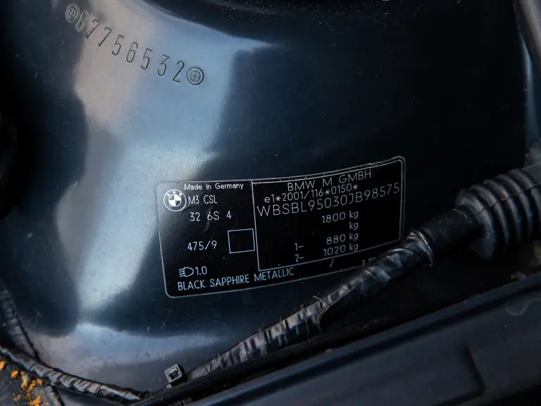 Produced on 27 September 2003, it was taken to Burgdorf, Germany by its first owner in 2004. Maintenance invoices and proof of technical safety inspections from that time onward are present in the vehicle’s accompanying history file. It should be noted the car’s odometer was changed at some point, with the 64,332 kilometres noted at the time of cataloguing believed to be closer to 90,000 kilometres. Cherished by a previous owner for nearly 15 years and under current ownership for the last two years, the M3 CSL is a must-have for BMW enthusiasts.