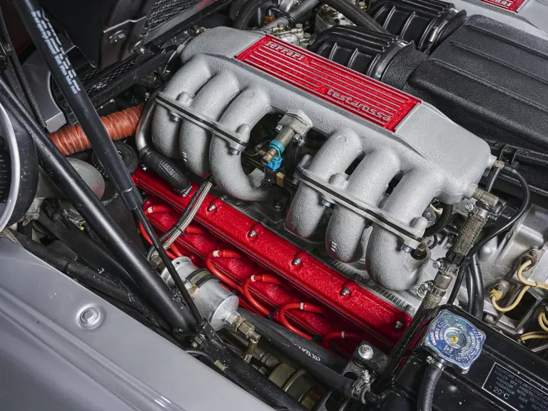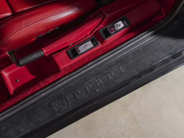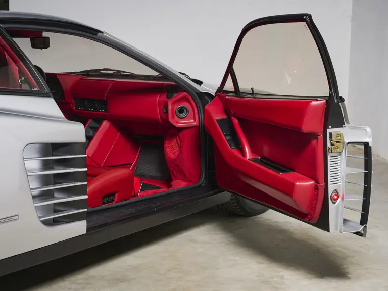 The earliest examples of Ferrari’s flagship model can be identified by their single A-pillar-mounted driver’s mirror, earning it the ‘Monospecchio’ moniker. Chassis number 60847 is one such Testarossa, finished in the exceedingly rare shade of Argento Silver over a red leather interior. It was destined for the Belgian market, where it was delivered on 31 January 1986 via Francorchamps Motors of Brussels. Later, it went to Japan before returning to Europe via France, eventually making its way back to its native Italy in 2007.