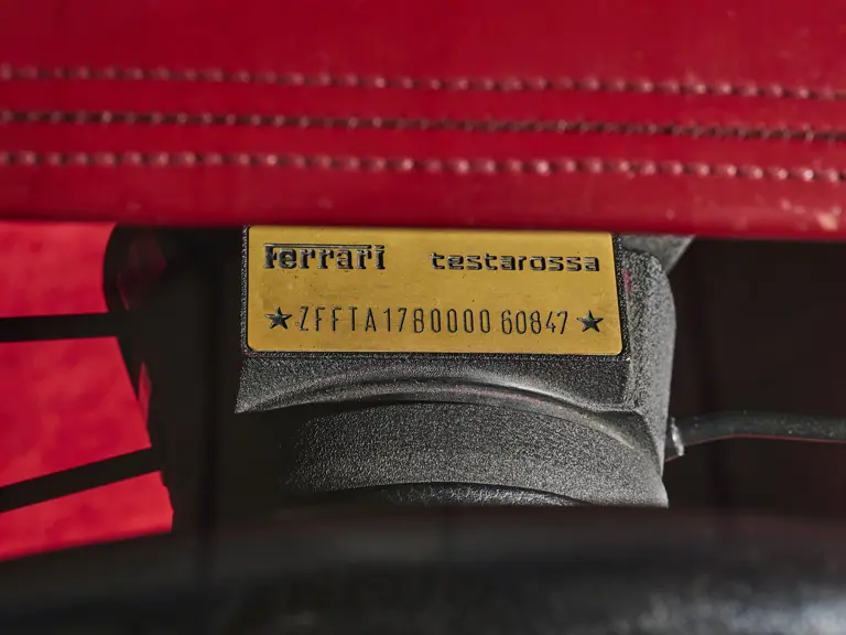 Les premiers exemplaires de ce modèle-phare sont identifiables à leur rétroviseur extérieur unique installé sur le montant de pare-brise, ce qui leur vaut le surnom de "Monospecchio". La présente voiture, châssis 60847, fait partie de ces Testarossa, et elle présente la couleur extrêmement rare d'Argento Silver avec intérieur rouge. Elle était destinée au marché belge où elle a été livrée le 31 janvier 1986 par l'intermédiaire de Francorchamps Motors, de Bruxelles. Par la suite, elle est partie au Japon avant de revenir en Europe via la France, pour se retrouver finalement en 2007 dans son Italie natale.