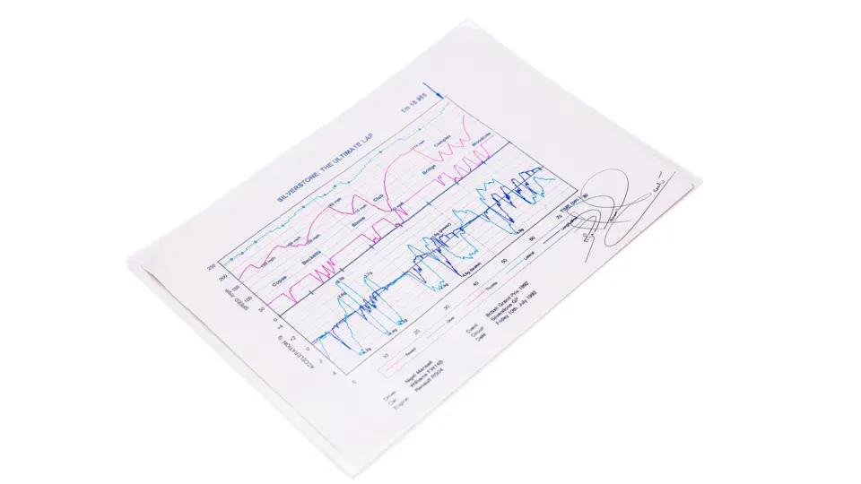 From Nigel Mansell's race at the 1992 British Grand Prix. This time chart is signed by Nigel Mansell.
