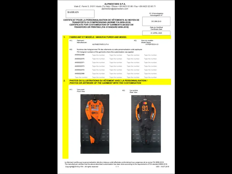 Proceeds of this lot will go towards the charity UK Youth and its Avon Tyrrell Fundraising Appeal.