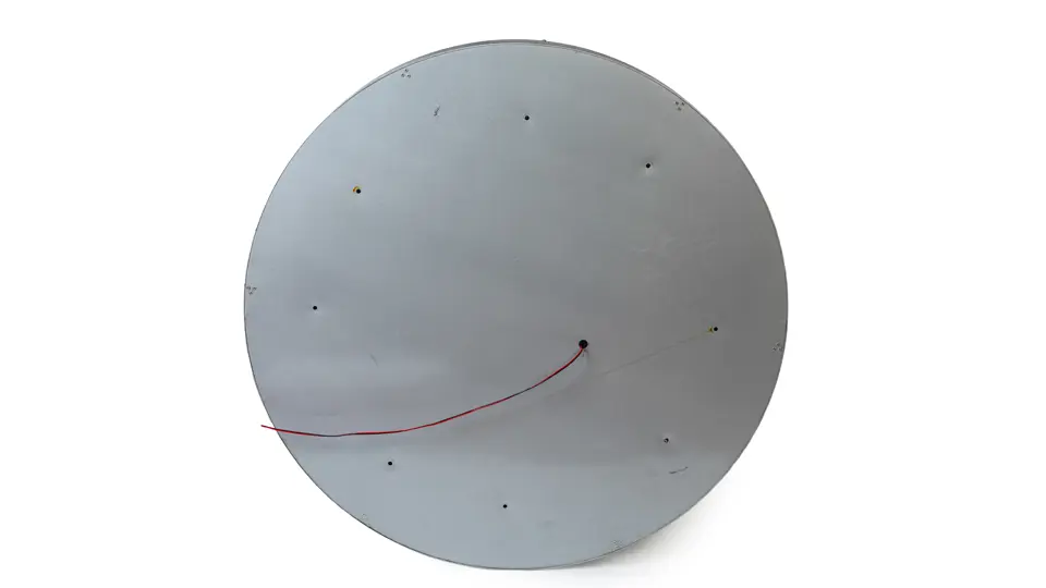 Measures 120 cm in diameter and is 13 cm in depth, with a weight of 21 kilograms.