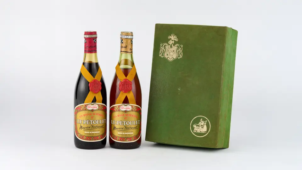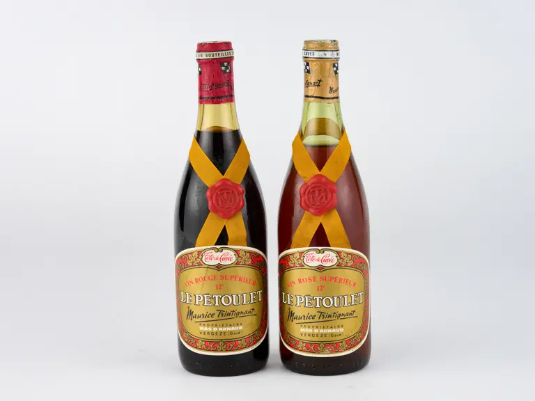 Wine proudced at the French racing driver's personal vineyard. Contains one bottle of red and one bottle of rose wine. Please note it cannot be guaranteed that the contents are safe to consume, this lot is sold for collectable purposes only.