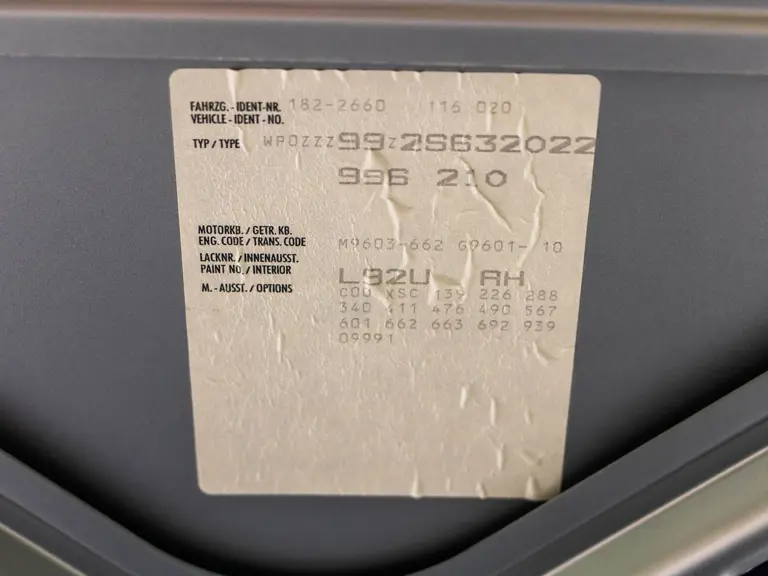 The Porsche 996 Targa we have available is a real unicorn. Delivered to Porsche Zentrum Altötting in Altötting on May 20, 2003. It would remain with the dealership until it was delivered to the first owner, a Mr. Andre Raymond Whittaker of Zangberg on August 28, 2003. In 2016 the car would be registered in the name of his wife. So we see this car as a first owner car. The car has extremely low mileage and is very well documented. An interesting history file, including German registration documents, invoices and TUV documents are presented as are the original books of the car.