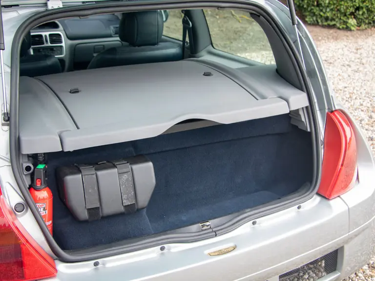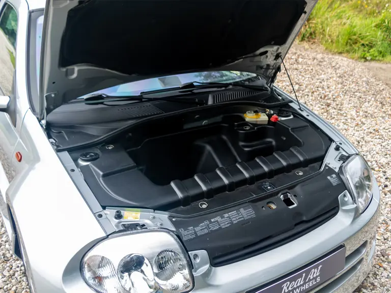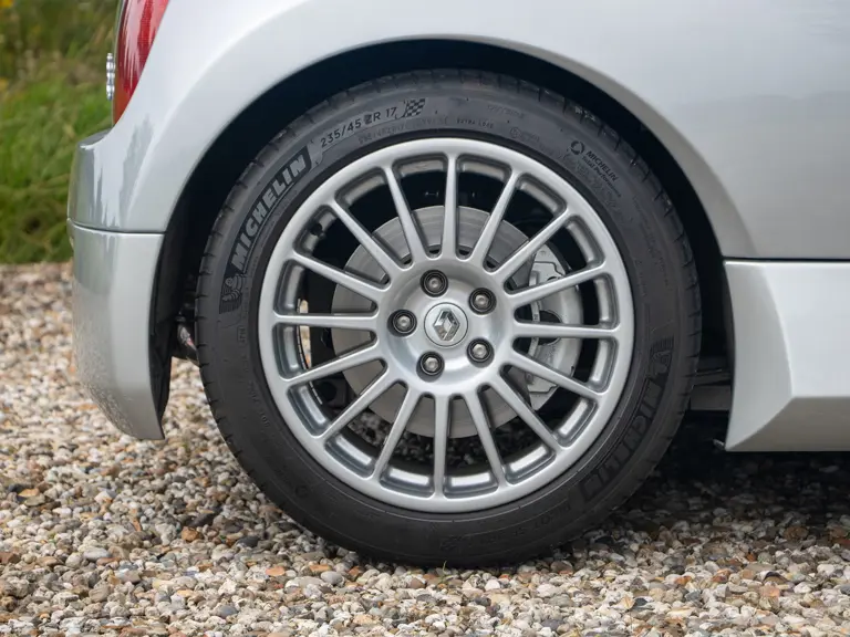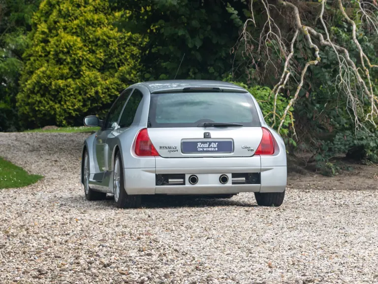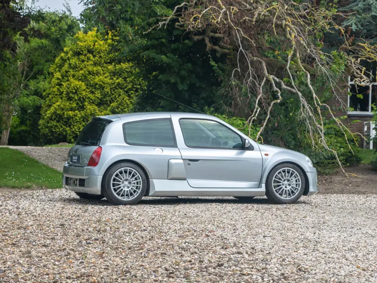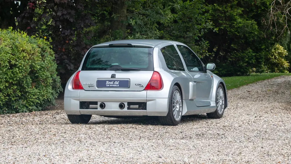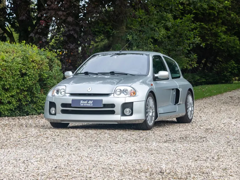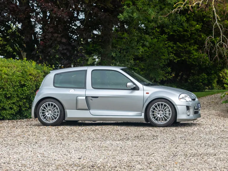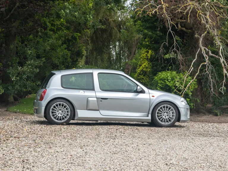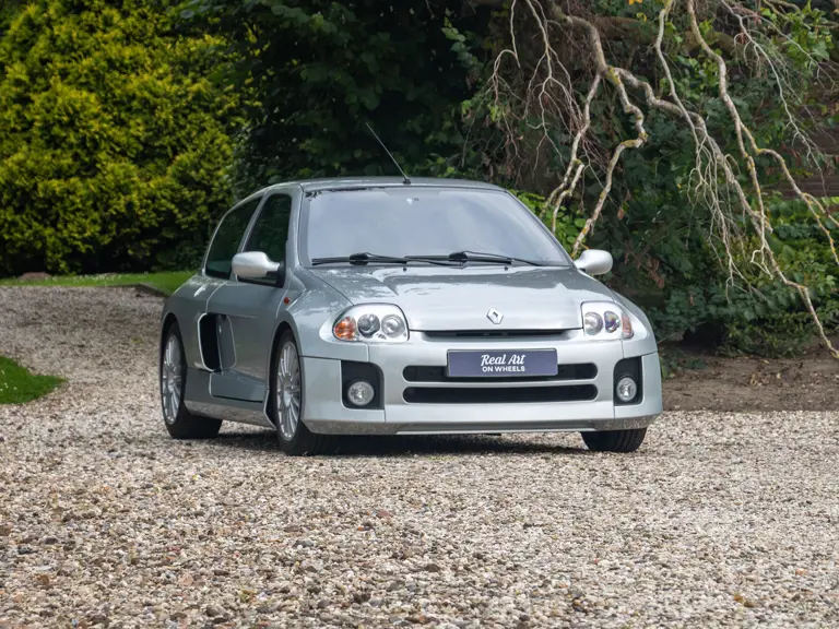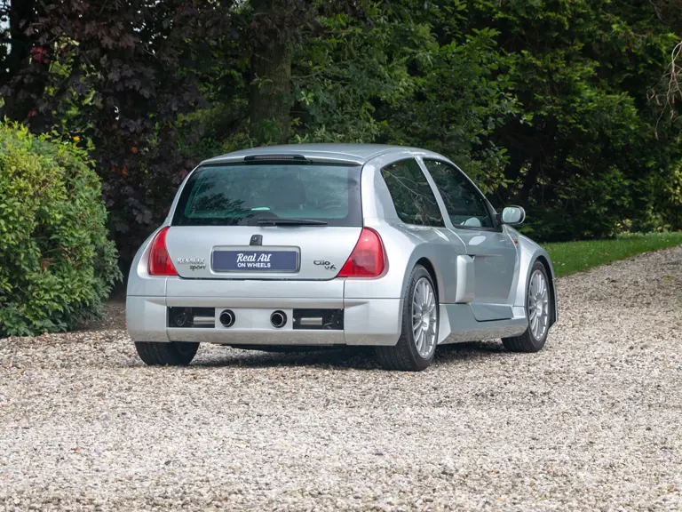 The Renault Clio V6 Renault Sport was based on the Renault Clio Mark II, though it shares very few parts with that car. The 3.0-lire V-6 engine, sourced from the PSA group, was upgraded to around 230 horsepower and placed in the middle of the vehicle, where standard Clios have rear seats - making this car a two-seater hot hatch. The mid-engined, wide-body concept of the Clio V6 was very reminiscent of the 1980s Renault 5 Turbo. Both road going models were low volume production making them very rare cars. Alongside the road car, a circuit only version was produced, known as the Clio V6 Trophy.